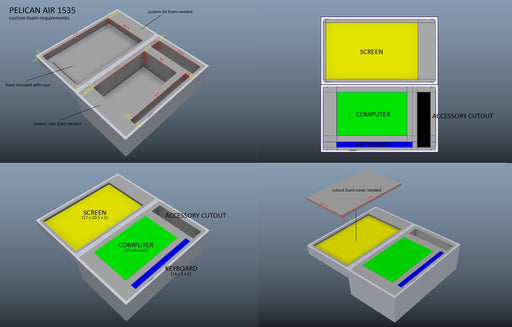 DESCRIPTION: Pelican Air case 1535 foam insert for computer Tower, Keyboard & Monitor Two levels of custom cut foam Made of closed cell Polyure...